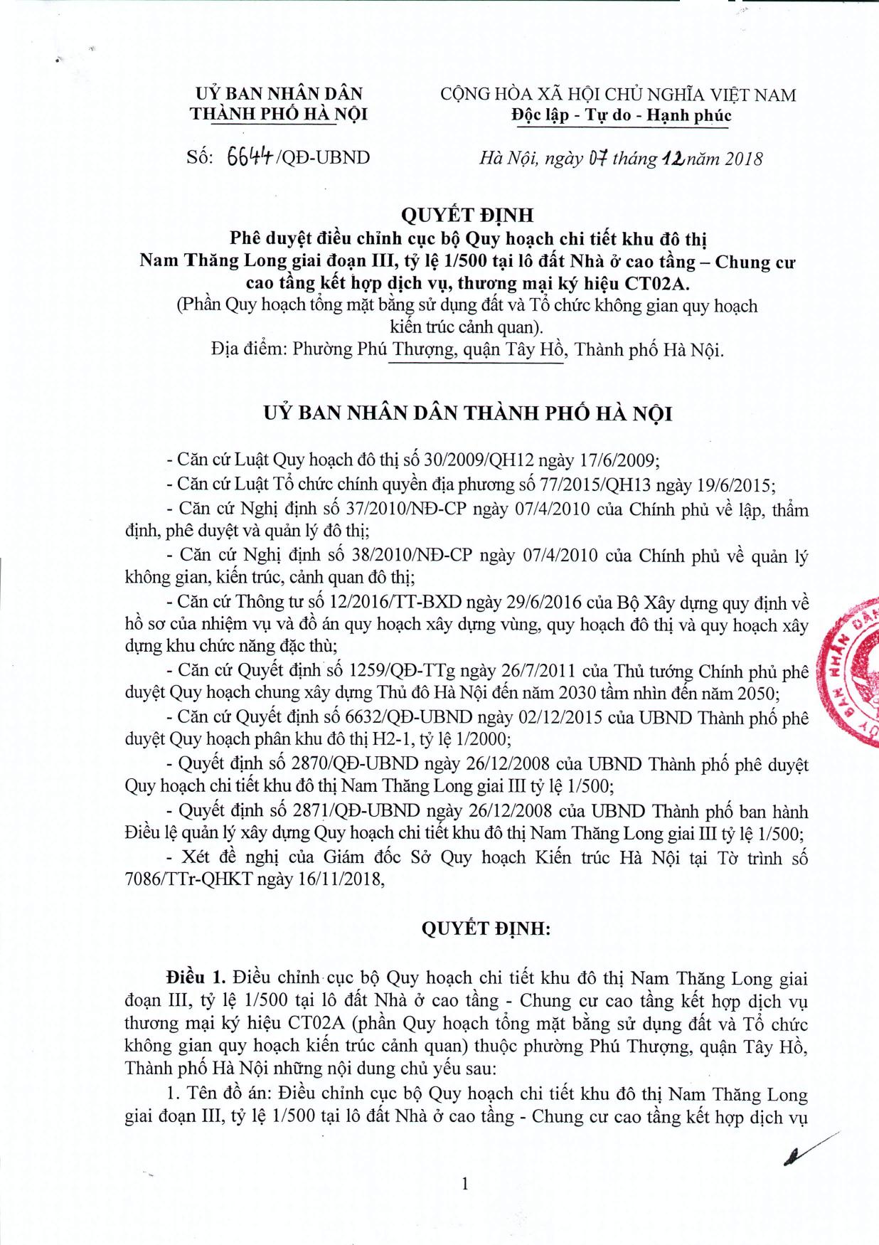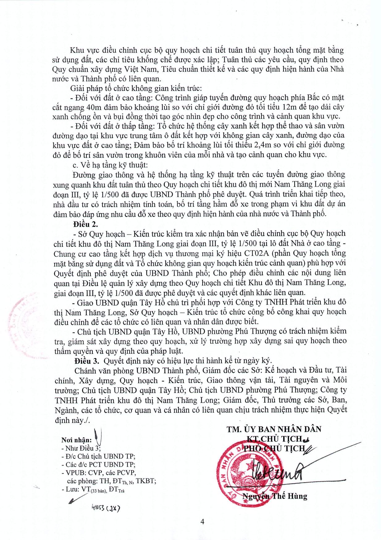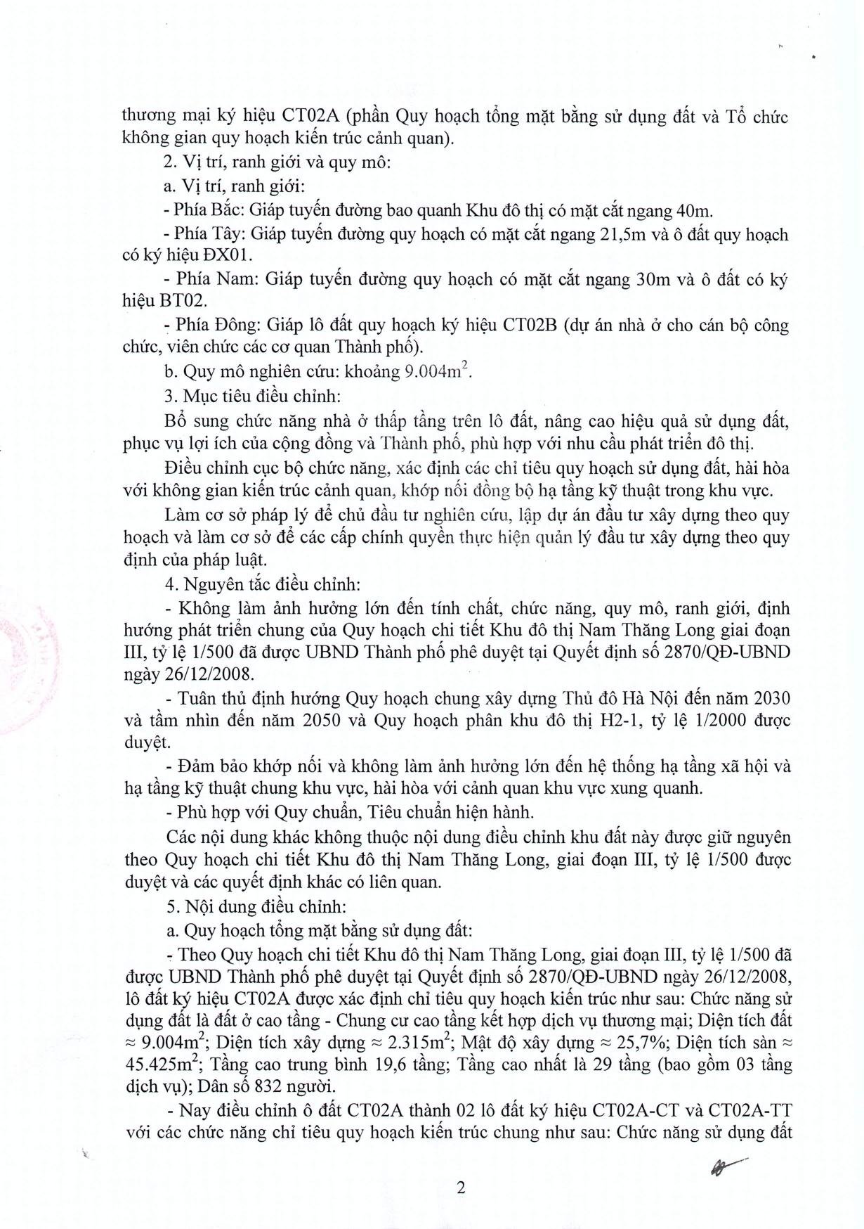 UBND TP Hà Nội điều chỉnh cục bộ quy hoạch chi tiết khu đô thị Nam Thăng Long giai đoạn III, tỷ lệ 1/500 tại lô đất ký hiệu CT02A